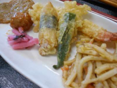 目がハート (顔)えび&野菜天ぷら・焼うどん あっかんべー