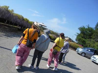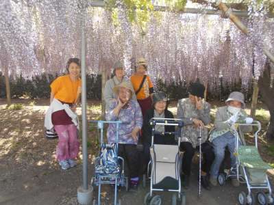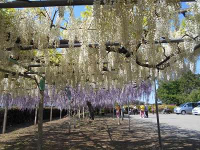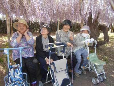 皆さんあせあせ (飛び散る汗)まずは藤棚の下でのんびりお花見ー (長音記号1)目ぴかぴか (新しい)