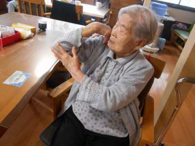 こちらのストレッチ運動も座位にてゆったりと上肢筋肉を