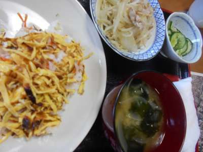 五目ちらし・肉野菜炒め・きゅうりとカブの朝漬