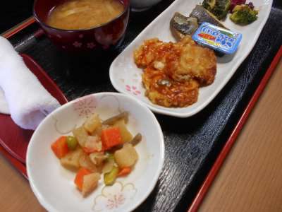 鶏天チリソースかけ・ホッケ塩焼き・煮物