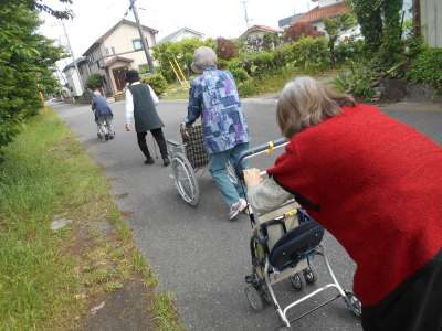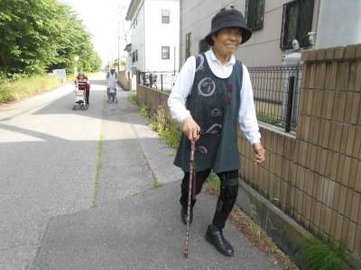 ウォーミングUPの後は、散歩しながら歩行訓練