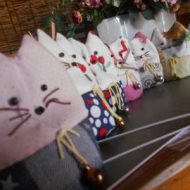 玄関の真心ネコが父と母をお出迎え(=^・^=)揺れるハート