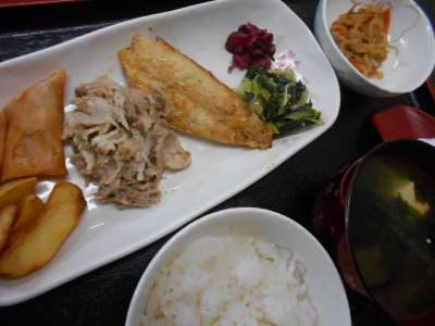 生姜焼き、春巻き、焼き魚