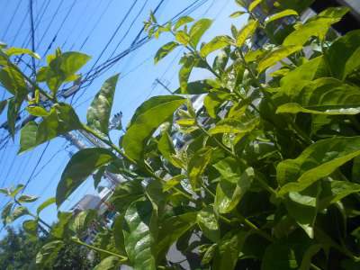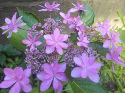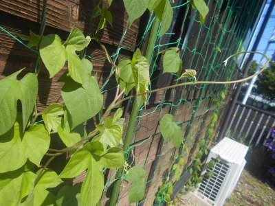 紫陽花の葉も琉球朝顔葉も空に向かって成長中