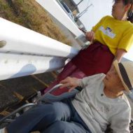 外にイスを出してお散歩の皆さんを待っている間に