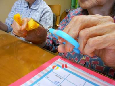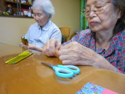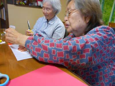 母達が持っているのは折り紙(*´•o•`*)美容院 (鋏)美容院 (鋏)美容院 (鋏)