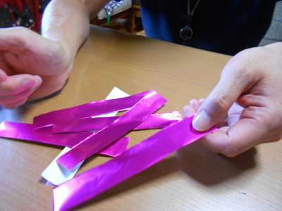 細長く1本に折りますわーい (嬉しい顔)わーい (嬉しい顔)わーい (嬉しい顔)それをひらいて・・・