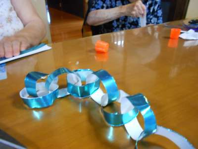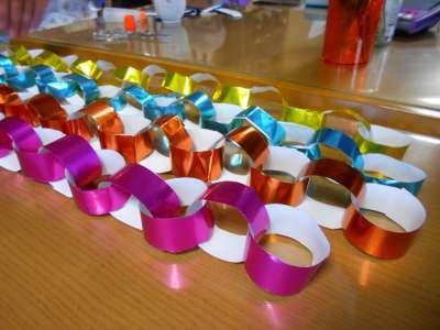 たくさんの色とりどりの輪っか飾りが完成しましたハートハートハート