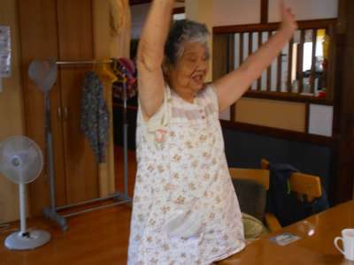 手をしっかり上げて体操しています手 (チョキ)