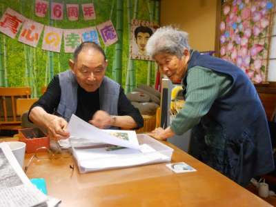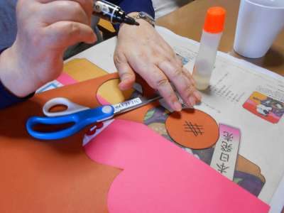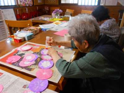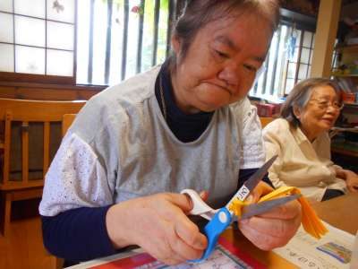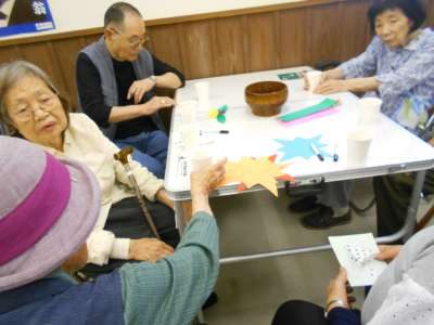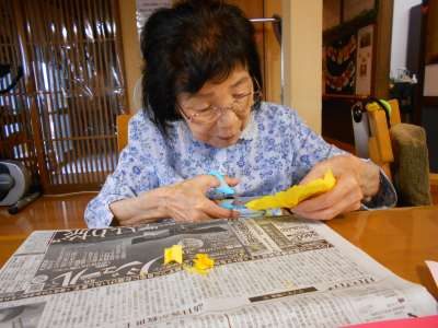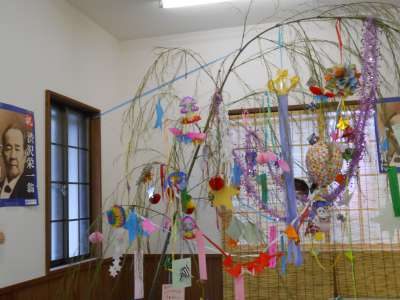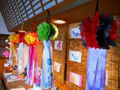 お休み処では、七夕イベントで色々な折り紙の折り方を