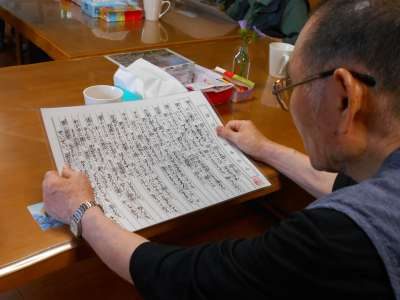 日付・本日の予定の確認をした後は、唱歌を合唱です