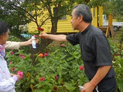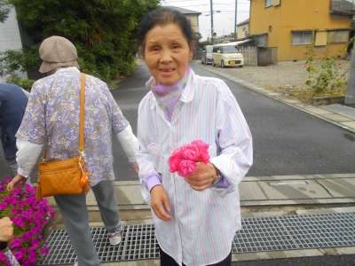 オーナーからお花をもらった母達