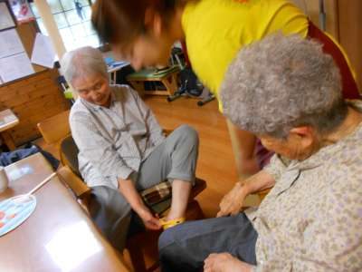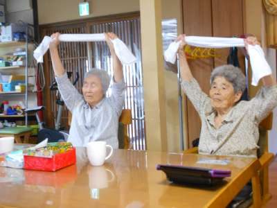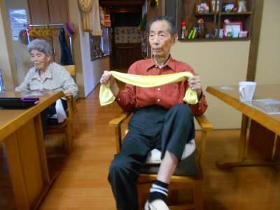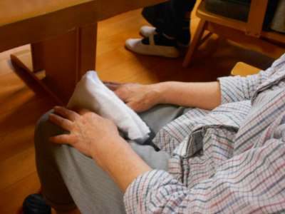 膝にタオルを挟んで、膝に力を入れたり緩めたり~