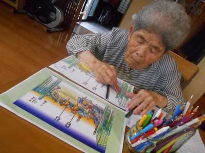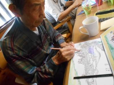 集中して、みなさんそれぞれの感性で色を塗っていただき