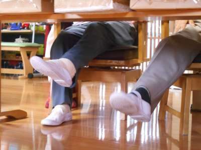 グーにした手を膝と膝の間に挟みます٩(ˊᗜˋ*)و