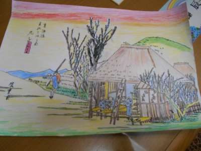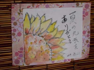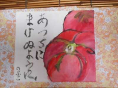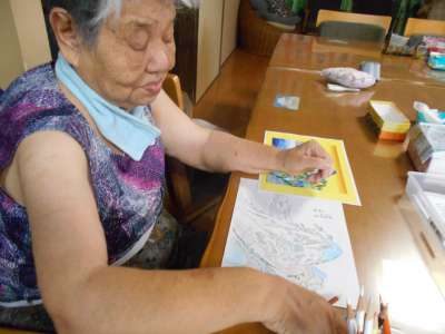 イラストを貼りつけて・・折り紙のセミもペタペタ