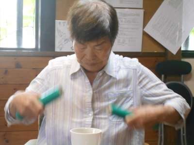 ダンベルを使って、ゆっくりと動作しながら行う筋力