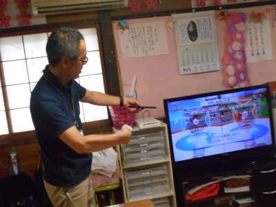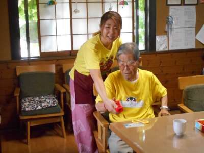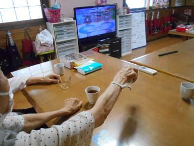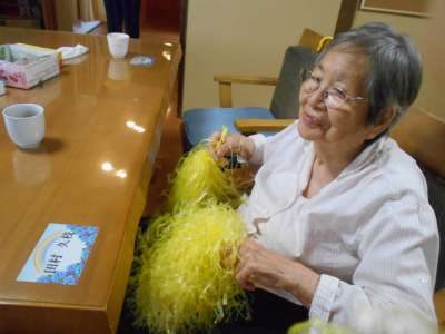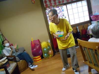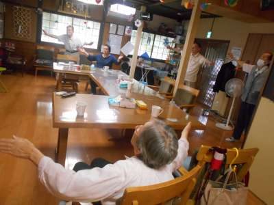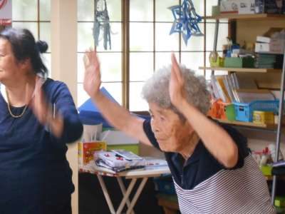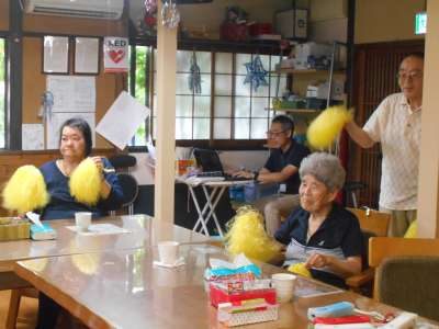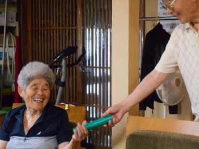 の曲に乗りながらバトンを繋ぐ歩行訓練