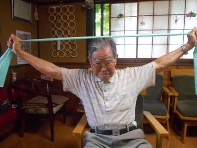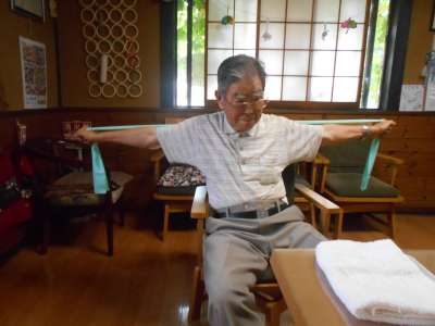 ご自分で負荷調整をしながらの伸縮運動で上肢筋肉を