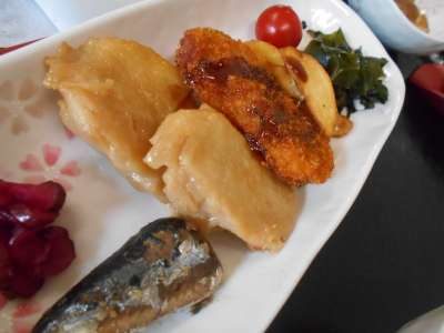 さんま煮つけ、切り干し大根、ポテト、漬物