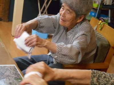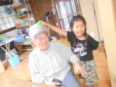 ひ孫ちゃんと打ち解けて、お手玉やけん玉などをして