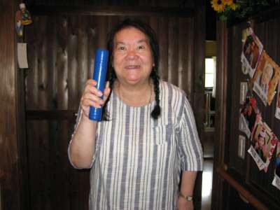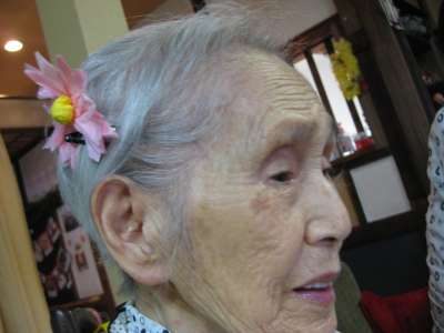 母の頭につけてみました