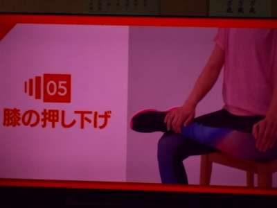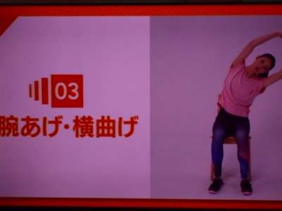 上腿を曲げてゆっくり起き上がり腰と背筋を伸ばします