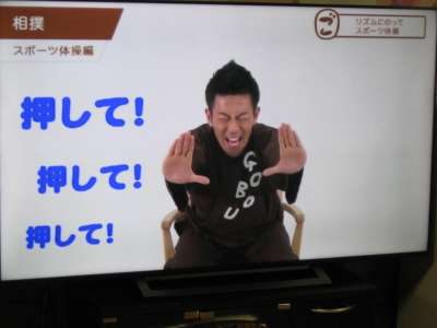 音楽に合わせ、歌謡体操₍₍ ᕙ( ˆoˆ )ᕗ⁾⁾