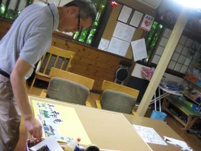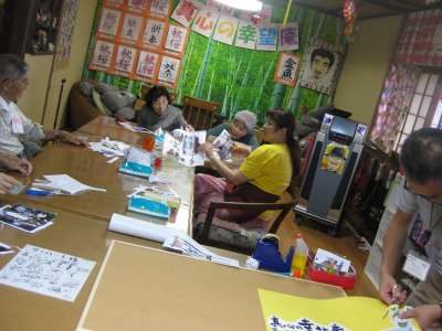お散歩後は、明日の作品展示会の為のウェルカムボード作りを