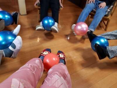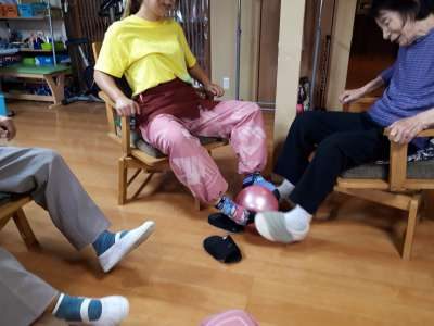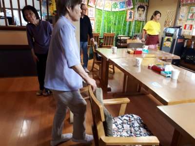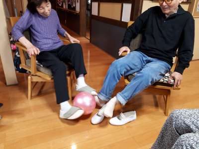 ロコモ予防体操ではかかと上げや、片足立ちをおこないます