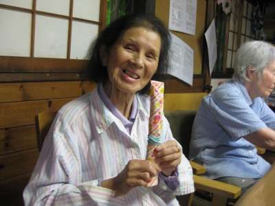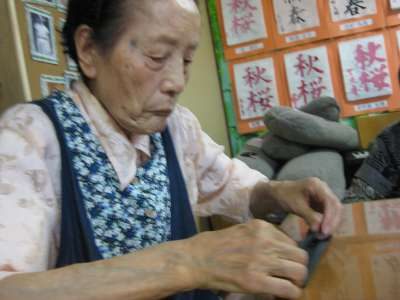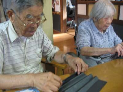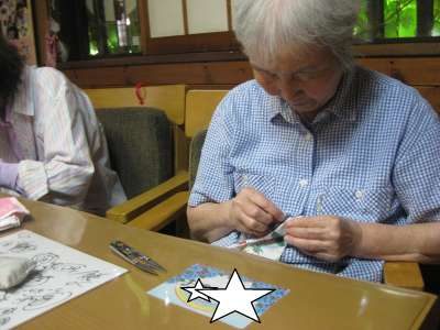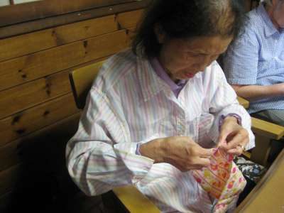 お母さんは、あと少しの箸袋作りに奮闘