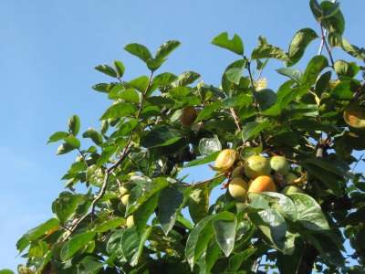 近所の柿の実もだんだんと色づき始めました