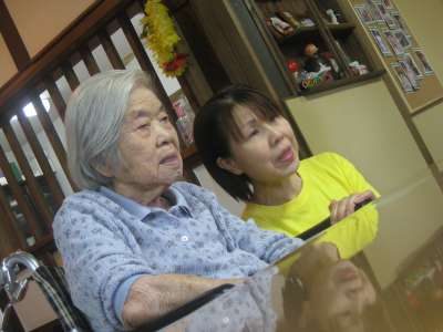 母は、裁縫の続きをされています