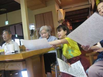 スタッフと一緒に歌います