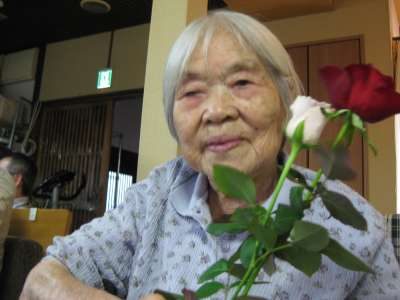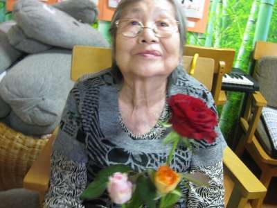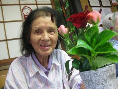 お花も喜ぶ満面の笑みをこぼすお母さんです