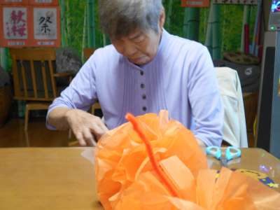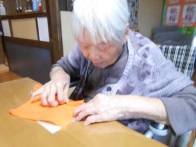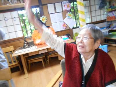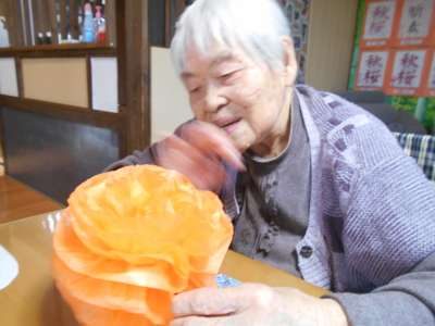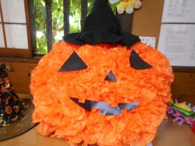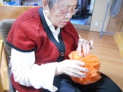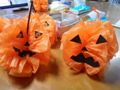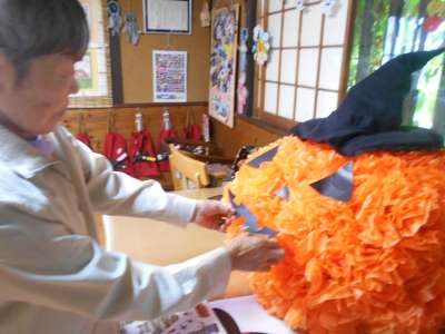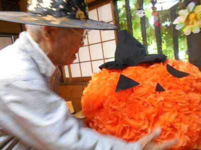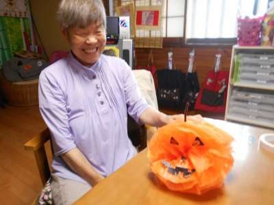 口をつければ完成のかぼちゃを抱えます( 厂•ω• )厂