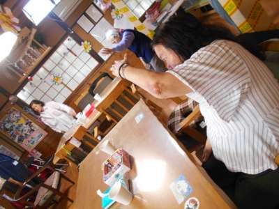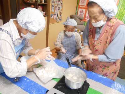 こねた白玉粉を皆さんでお団子にします○
