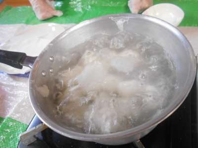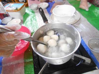 沸騰したお湯の中にお団子⇒投入