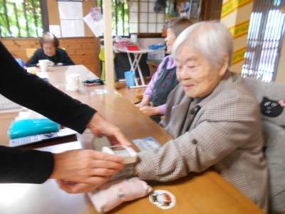 朝のバイタルチェックで体温・血圧・脈拍を測ります病院