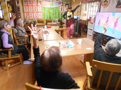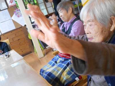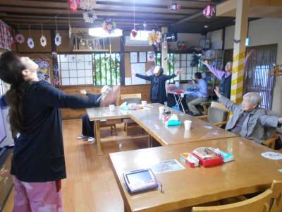 音楽に合わせて身体を動かしましょう右斜め上右斜め上