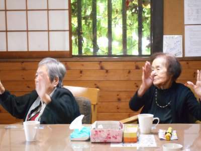 考えながら手 (グー)手 (チョキ)手 (パー)で脳の活性化を図りますヽ(。・ω・。)ノ