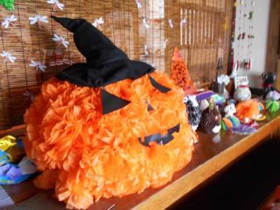 玄関では、大きなハロウィンかぼちゃがお出迎えしますぴかぴか (新しい)
