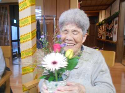 お花に負けないくらいの笑顔を