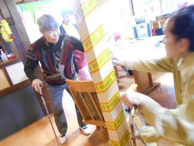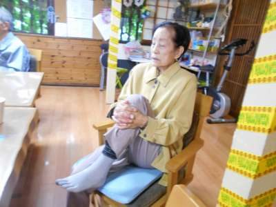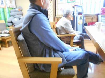 歩行訓練おつかれさまでしたほっとした顔 ひと息ついたら・・