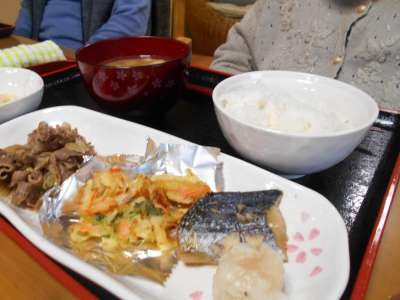 本日の昼食は、牛丼風レストラン サワラの照り焼き・かきあげ