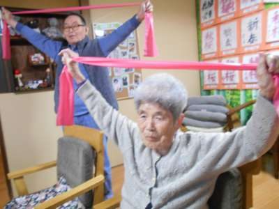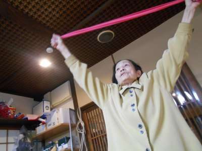ゴムバンド体操は、ストレッチの際に補助具として用いる