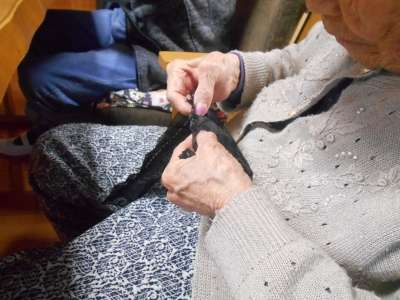 本日の手工芸 針と糸を使い裁縫をしまするんるん (音符)