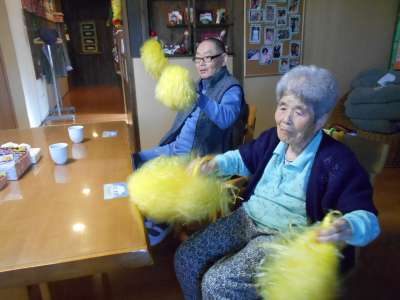 ボンボンを上下左右に振りながらの上肢運動ですひらめき