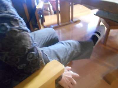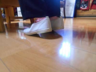1 (one)2 (two)3 (three)1 (one)2 (two)3 (three)4 (four)5 (five)の掛け声で足を上げたり、下げたり